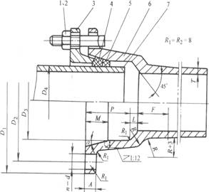 1-螺母  2-螺栓  3-壓蘭  4-膠圈  5-支撐圈  6-管體承口  7-管體插口